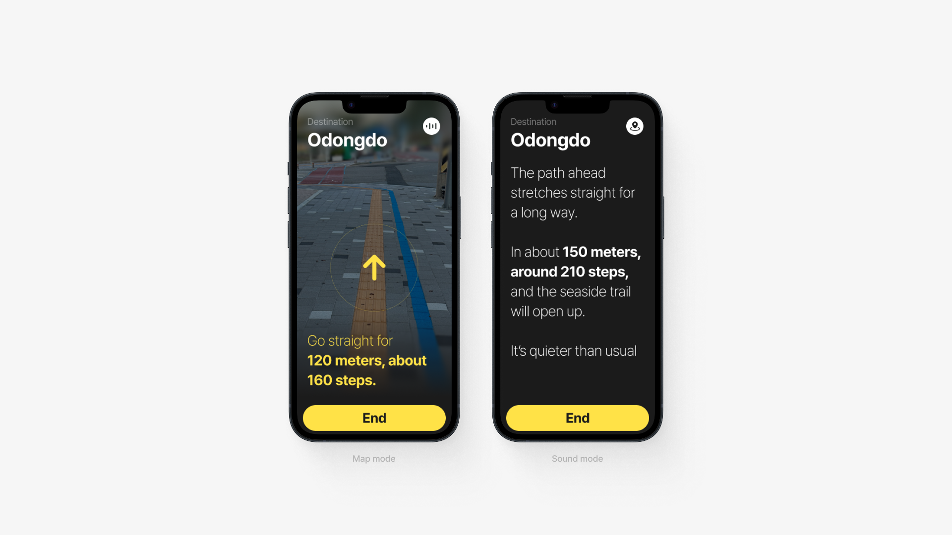 Sound mode allows users to navigate without looking at the screen. Through earphones, it provides real time voice guidance that not only delivers distance and information but also conveys the surrounding environment and atmosphere, offering a more immersive travel experience.
