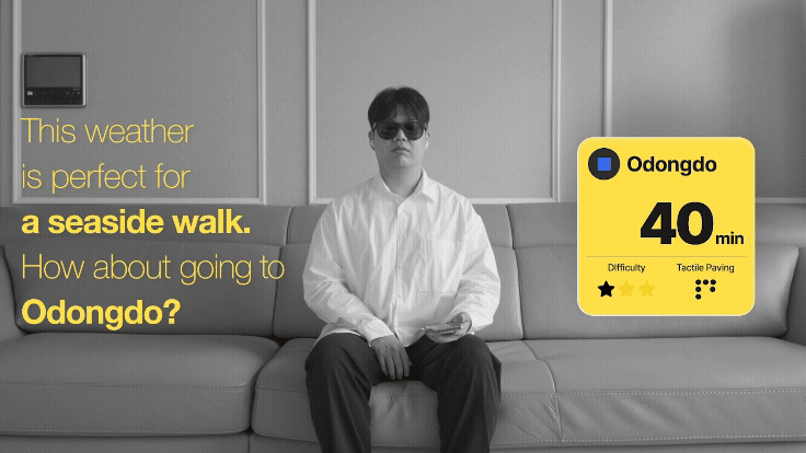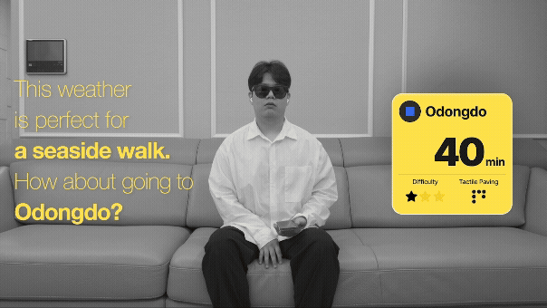 AI considers not only the user’s current location and weather, but also factors such as mobility conditions, difficulty level, distance, the presence of tactile paving, and estimated travel time to suggest the most suitable destination.