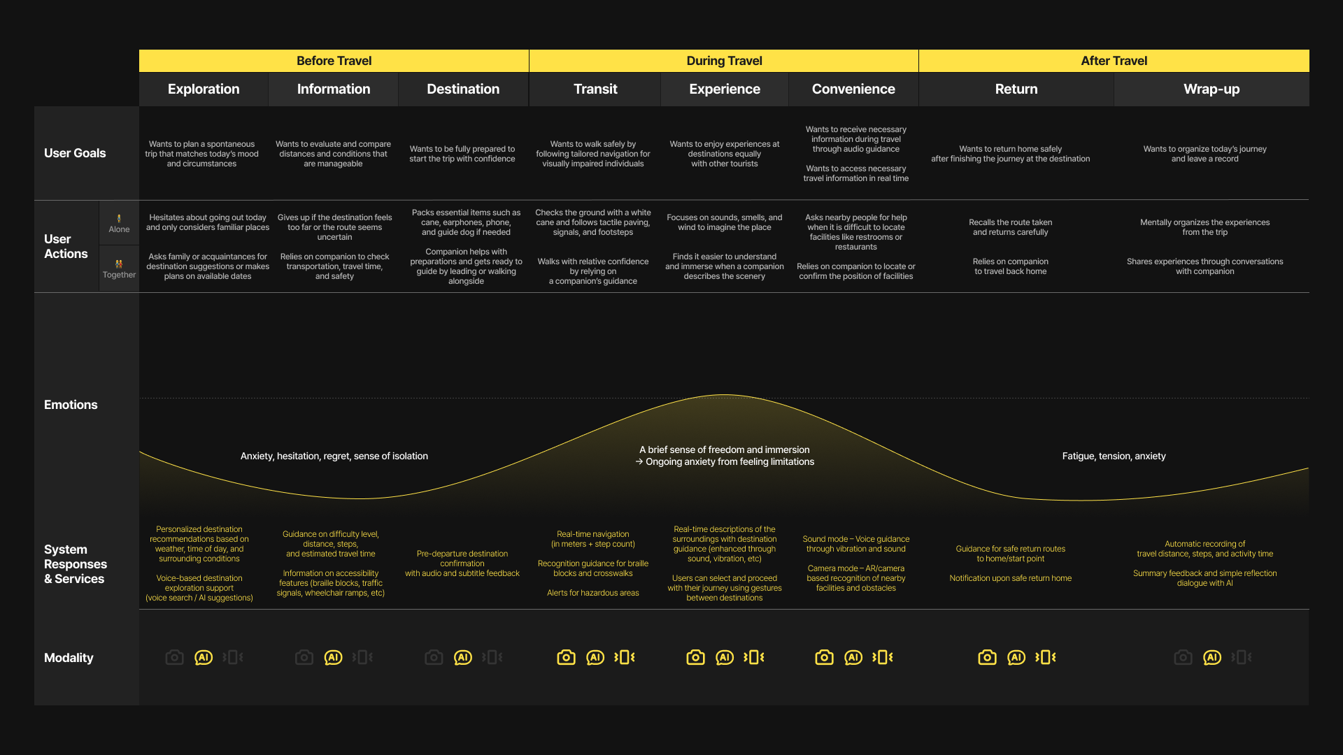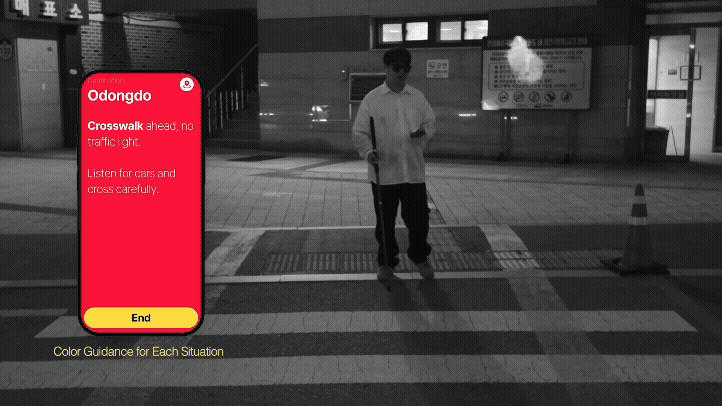 It requires a deep understanding of real mobility contexts and emotional needs. Although limited user testing and technical constraints left some aspects unverified, the project allowed me to trace the emotions and discomforts of visually impaired users through scenario-based exploration and reflect on how a designer could contribute meaningfully.