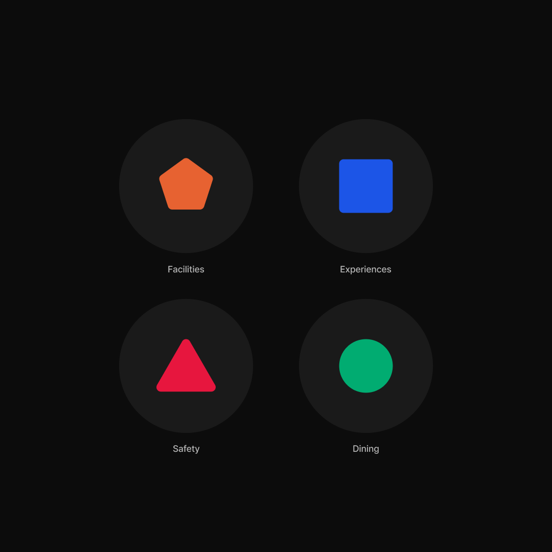 Category icons combined with voice guidance help users clearly identify and quickly access the information they need.