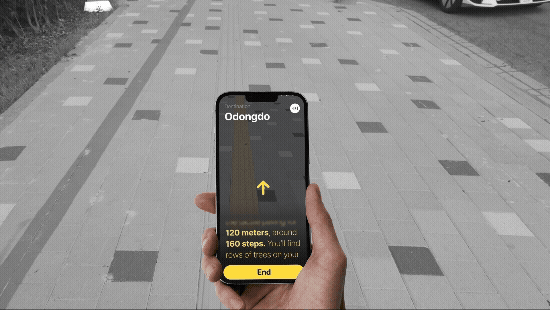 With a camera-based AR interface, Map Mode displays tactile paving, crosswalks, and obstacles on the screen.