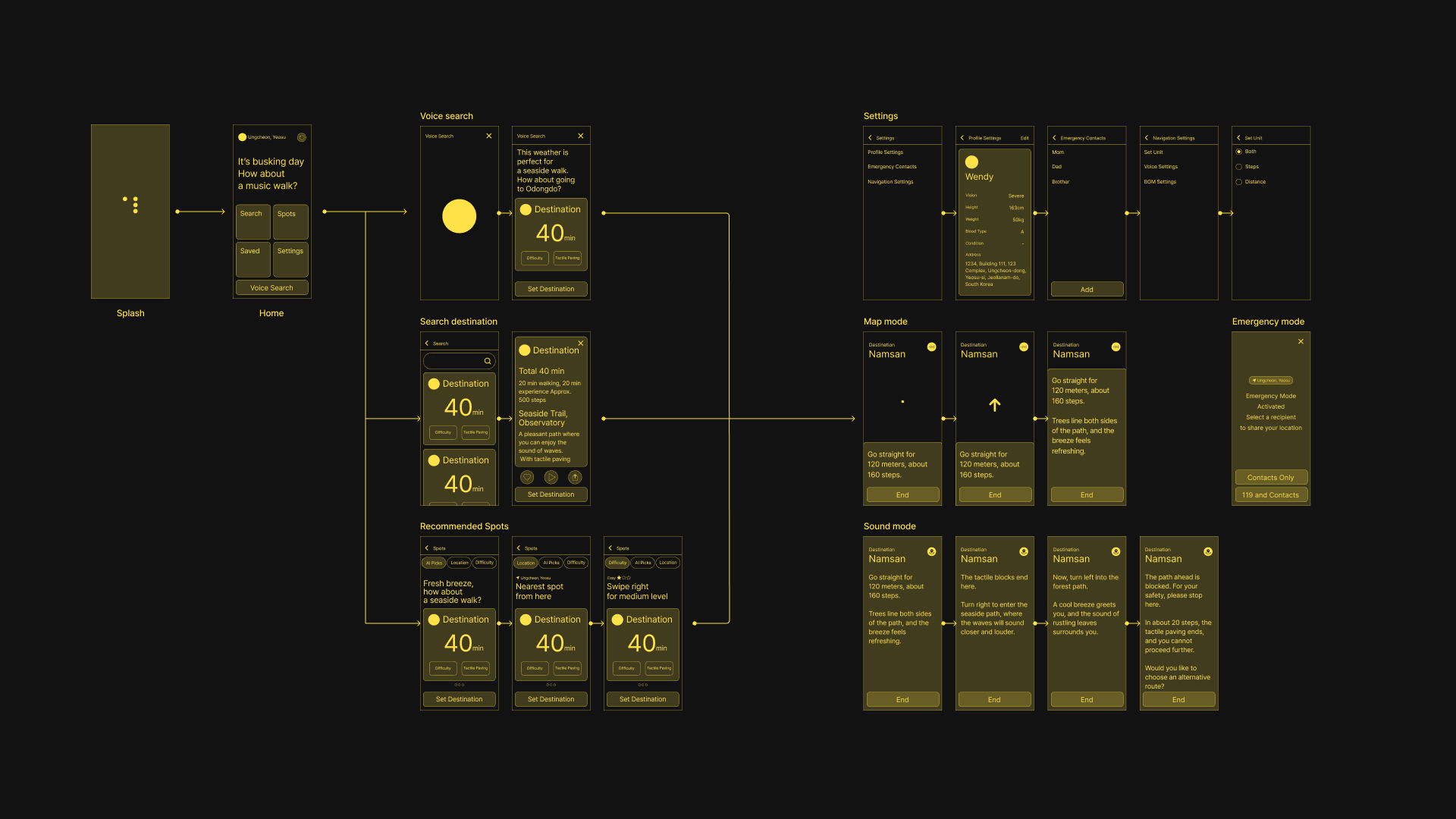 Based on these insights, I identified destination search, real-time route guidance, and emergency response as the most essential functions for visually impaired travelers.